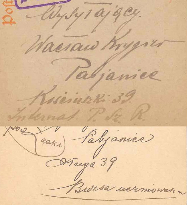 No, nie do końca. Raz Długa a raz Kościuszki. Numer ten sam, budynek był bursą, a pod koniec wojny stał się internatem, choć po prawdzie to przecież tylko zmiana nazwy, funkcja jest taka sama. Pierwszy list wysłany został w 1916 roku, drugi zaś w 1918.