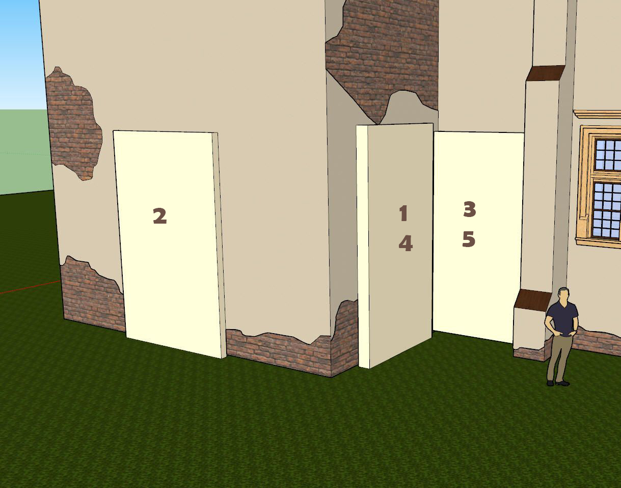 Najpierw w alkierzu, od jego wschodniej strony, tu gdzie są i dziś (1), potem w alkierzu, ale od południowej strony (2), potem kolejne w południowej elewacji (3), kolejno znów we wschodniej elewacji alkierza (4), by dziś zostały jak są… plus dodatkowo drugie (5), ale komu potrzebne, skoro nie używane i przy samych głównych?