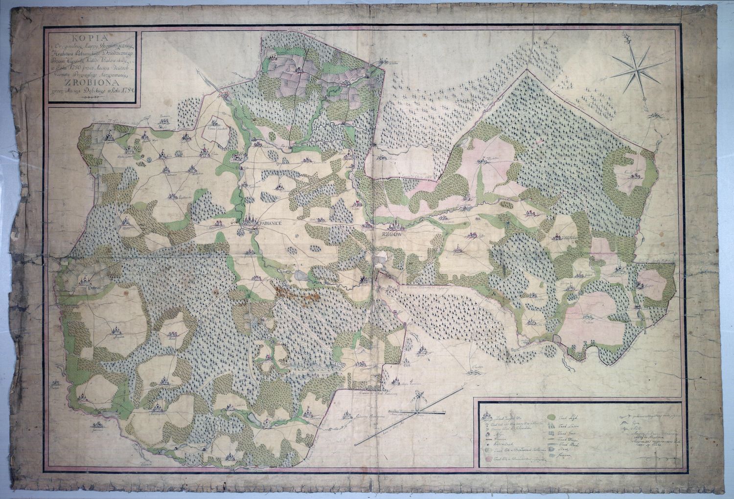 W archiwach AGAD zachował się interesujący zespół planów dóbr należących niegdyś do kapituły krakowskiej, obejmujących okolice Pabianic oraz szereg okolicznych wsi i folwarków. Rdzeniem tego zespołu są mapy sporządzone i opublikowane przez geometrę przysięgłego, Wincentego Odrowąża Pieniążka – w 1796 roku. W pierwszej połowie XIX stulecia plany te były jednak intensywnie wykorzystywane w praktyce administracyjnej, czego śladem są liczne dopiski, korekty i notatki graniczne nanoszone na ich marginesach w latach 1837–1853.