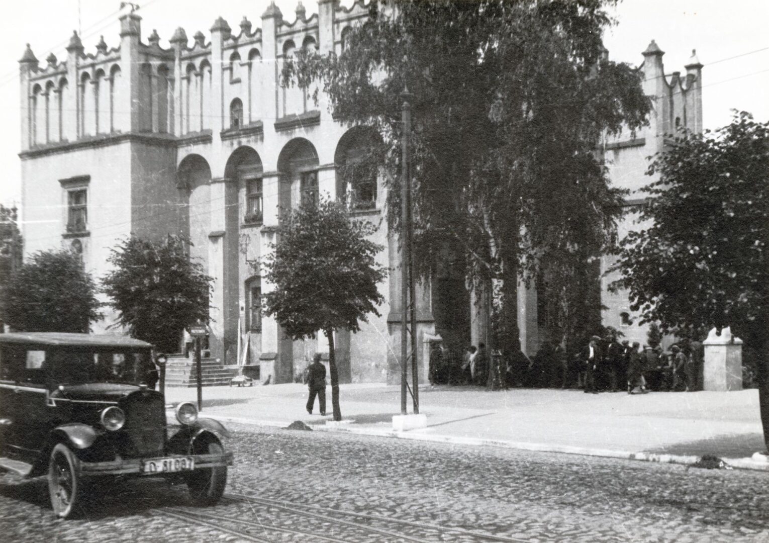 Jakkolwiek… nie widzę tu jeszcze torów tramwajowych, czyli tramwajowa mijanka musiała nie zmieścić się w ujęciu. Choć jakość zdjęcia jest tak słaba, że mogą się tu „chować” w pikselozie… Ale może jednak ich nie ma? Przyjmuję to za jakąś datę graniczną, gdyż w 1905 roku linia została wydłużona od Floriana do Zamku, ale kończyła się nieco na prawo od tego kadru i aż do 1924 roku długość torów nie uległa zmianie natomiast brak popiersia nad parterowym oknem alkierza sugeruje datę najpóźniej 1916 bądź 1917 roku.