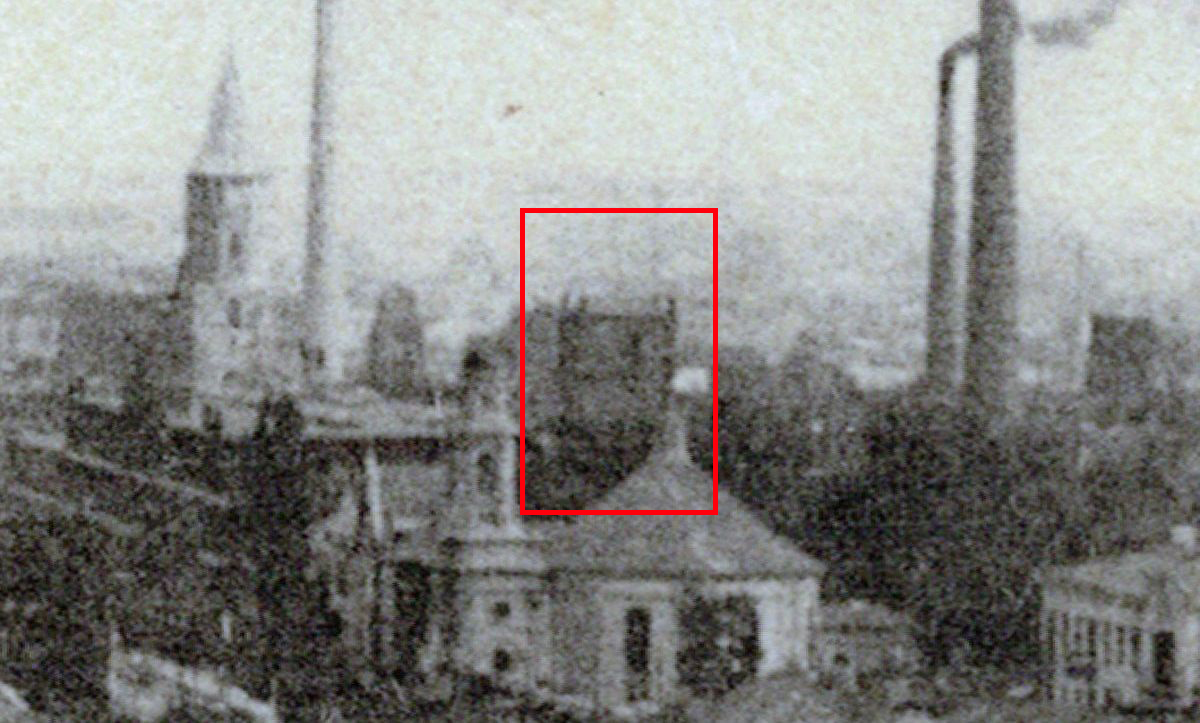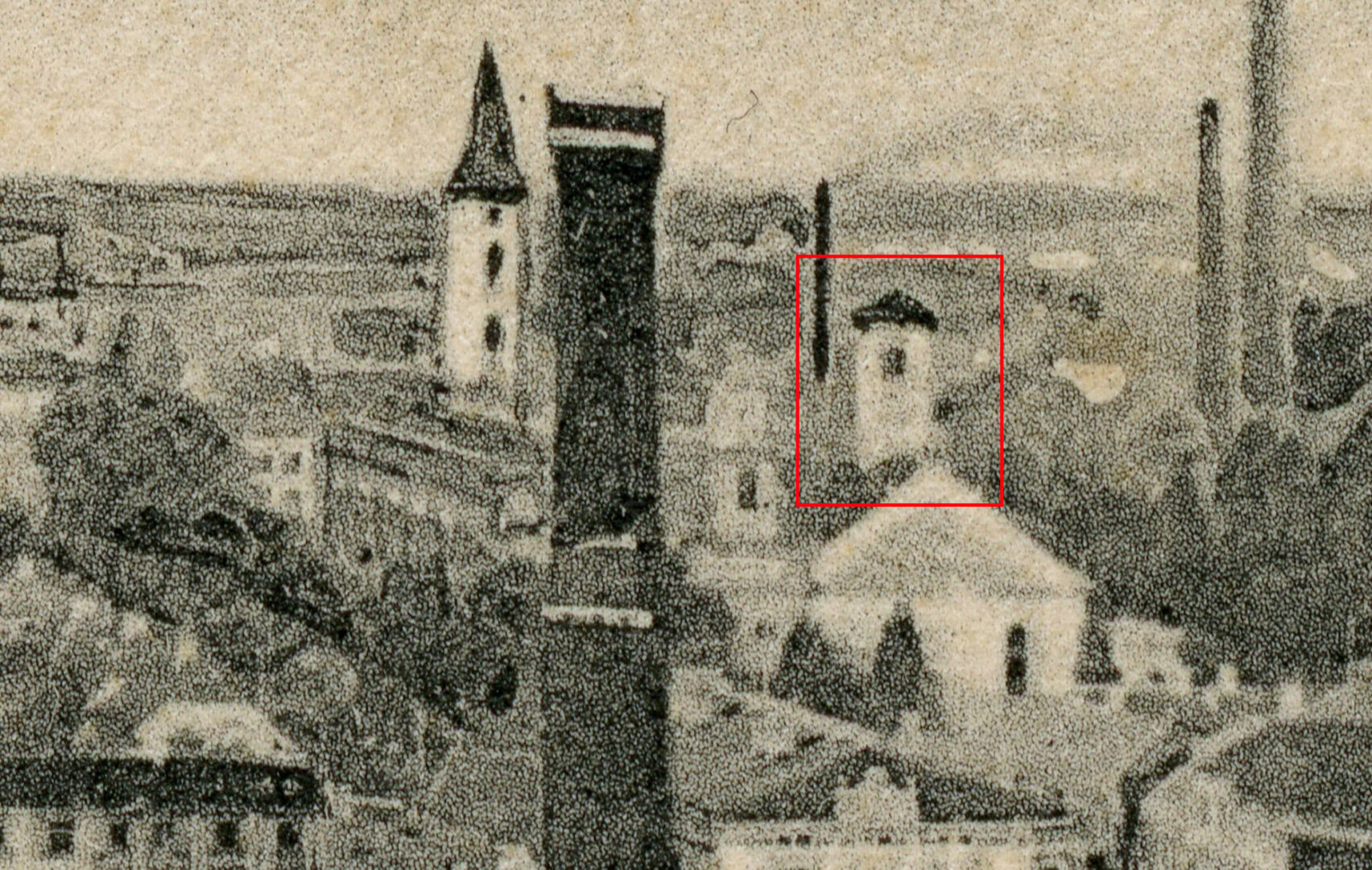 Porównałem z inną pocztówką, z okresu okupacji, która technicznie jest o wiele lepsza a zarazem i jakościowo i widać tam wyraźnie tę „wieżę” tak, jak powinna być widoczną.