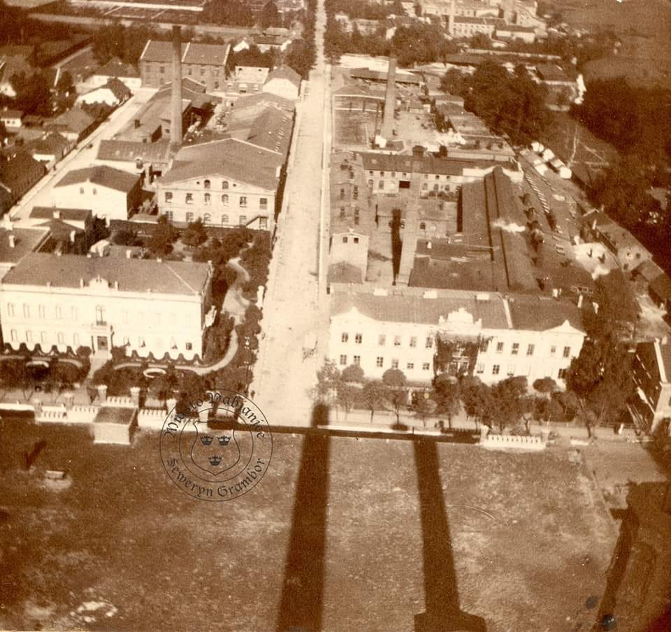Mamy tu fajny widoczek na południową część współczesnego „Pamotexu” do ulicy Grobelnej i dalszą część zakładów przejętych po przedwojennej „żarówce” czyli OSRAM Spółka Akcyjna, od 1921 roku produkująca żarówki na licencji OSRAM GmbH z Berlina.